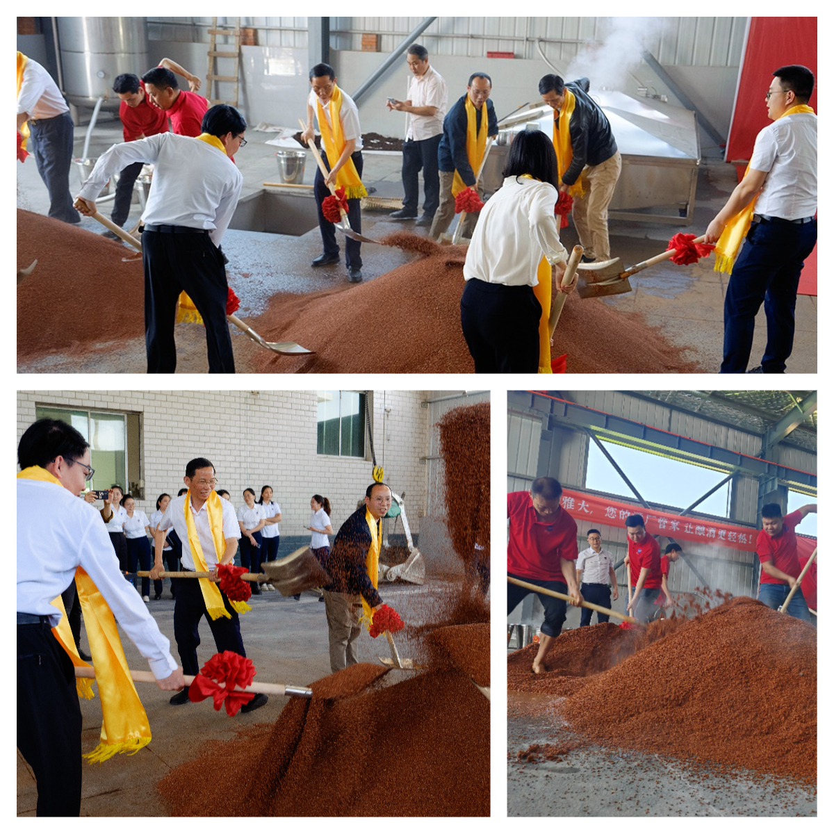 会议结束后,众人移步至雅大酒厂酿造车间进行揭牌仪式 ,并与工人们一起进行酱香型白酒酿造的“下沙” 环节。