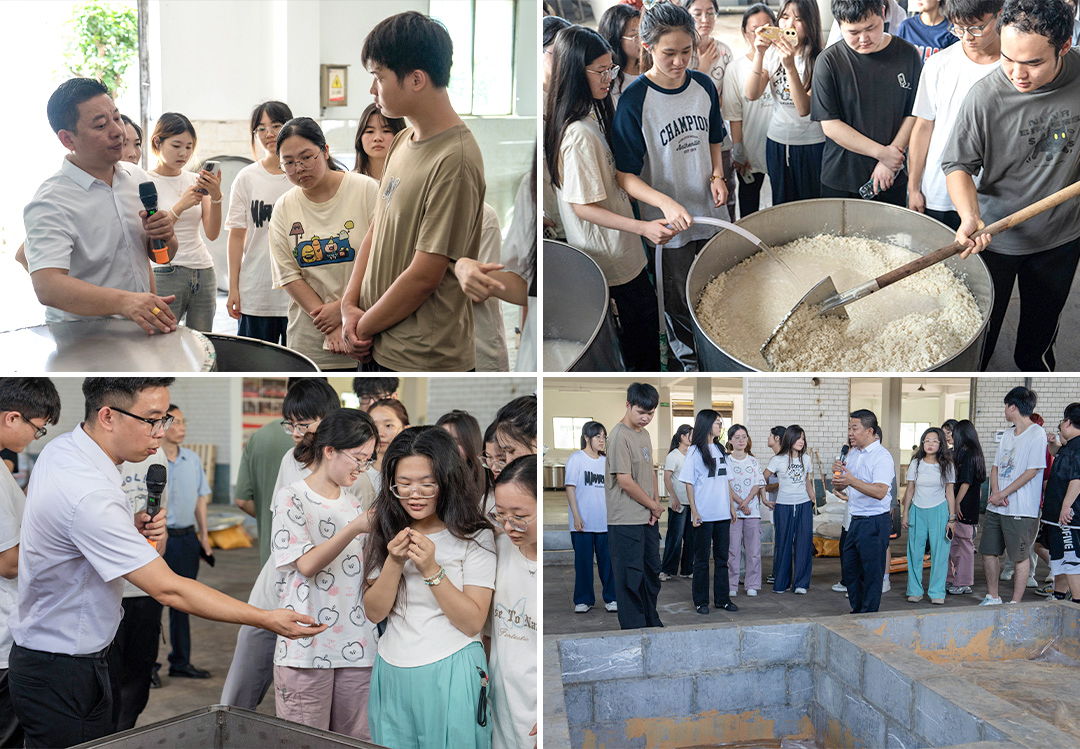 “课本上酒曲知识抽象枯燥,但在雅大,我们亲眼见证了它的神奇魔力,”一位学生兴奋地分享道,“从一粒粮食或一个水果,到最终醇香的酒液,酒曲就像无形的魔术师,驱动了整个发酵蜕变的过程。”在酒曲研发中心与生产车间,雅大技术专家现场解 析了“雅大牌”酒曲的原料奥秘与工艺精髓,学生们凝神观察,书本中的微生物发酵原理跃然眼前。
