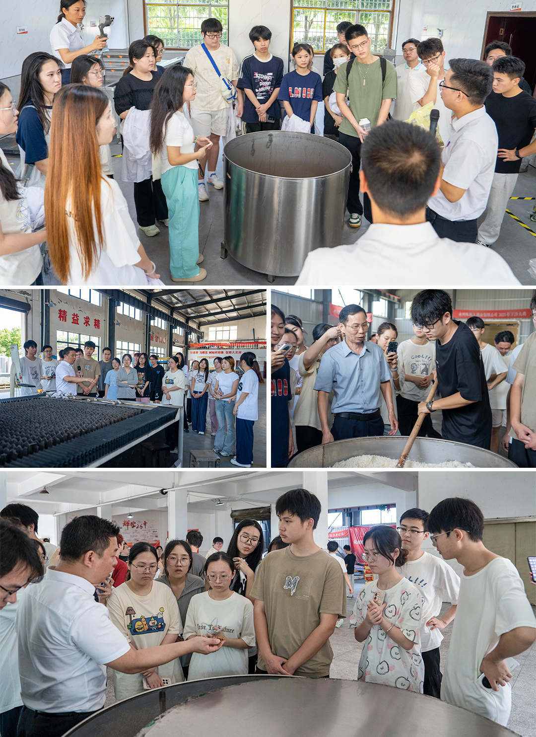“原来书本里的发酵原理,在生产线上是这样‘动’起来的 !”2025年6月17日,湖南科技学院 化生学院食品专业大二学子在湖南雅大智能科技有限公司研学之行后,发出全新感悟。在雅大董事长胡顺开、技术研发团队及学院老师的全程带领下,这群年轻学子深入生产一线, 通过“理论 实践”的深度融合,将课堂理论转化为真实体验,揭开了酿酒工艺的神秘面纱。
