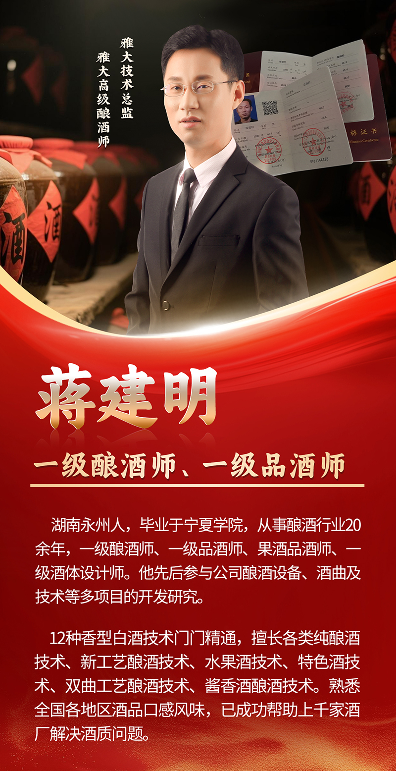 雅大技术总监,20多年实战经验,指导上千家酒厂,教